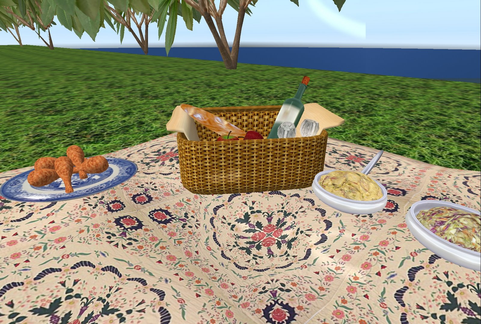 The blanket and basket are 22 prims. Rezzed items various, but I kept it pretty low.