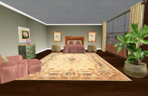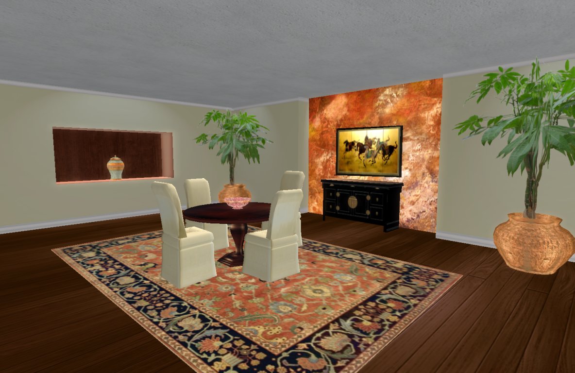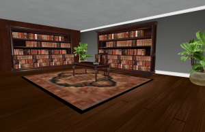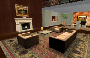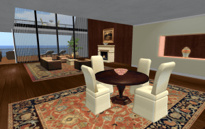 When Prim Perfect magazine invited me to be their Designer of the Month for June, I thought “Oh, goody!” – and then they told me I would be decorating a cabin on the Galaxy Cruise ship. Now, as it turns out, this cabin was quite large, which is good, but I would be limited to 300 prims, which is — a challenge. As it turned out, it was a good exercise in analyzing how I could lose prims without sacrificing quality. I was not able to use some of my very favorite things, of course — I did so want to use my leopard skin occasional chairs — but I used a lot of things from the Low Prim section of the store, and did away with a lot of shadows.