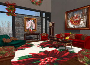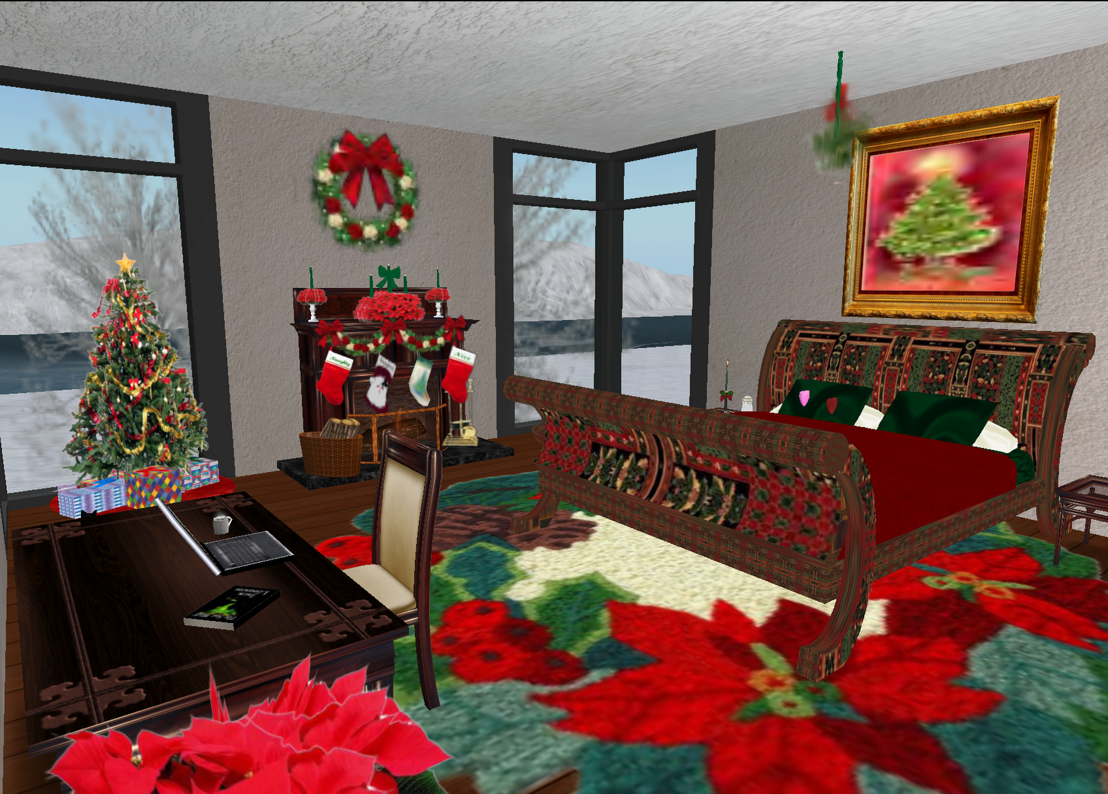 Pandora Phillip, whose remodding and decorating of the Rose Cottage is on this blog, has the use of a whole sim for the winter, and has turned it into a Winter Wonderland! Outside, more to see and do than I can include here — inside, EVERYTHING Christmas! It is fabulous!