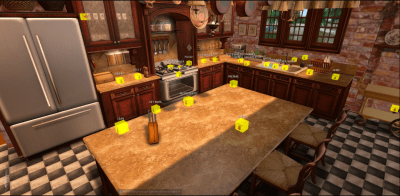 The picture below shows various places to Right or Left Click in order to animate, rez, or turn things on and off in one part of the kitchen (these yellow indicators rez with the kitchen and may be deleted whenever you like).