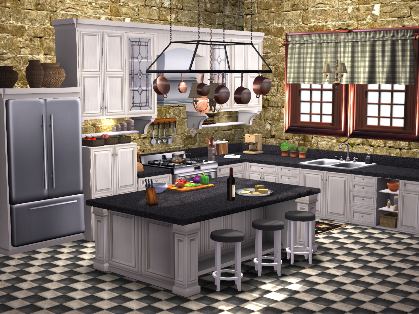 Top cabinet doors have glass panels and open, and new specular and normal materials have been applied (visible only with a materials-enable viewer).