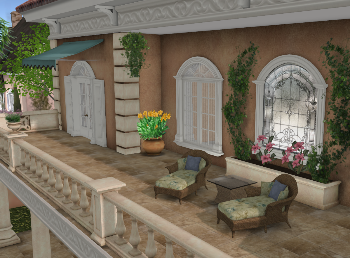 As promised, I have made a larger version of the San Marino, with a layout similar to the Gran Villa di Galli. It is a lovely Old World villa with lots of room indoors and out for family and friends. Every room opens onto a patio or terrace, to bring the outdoors in.