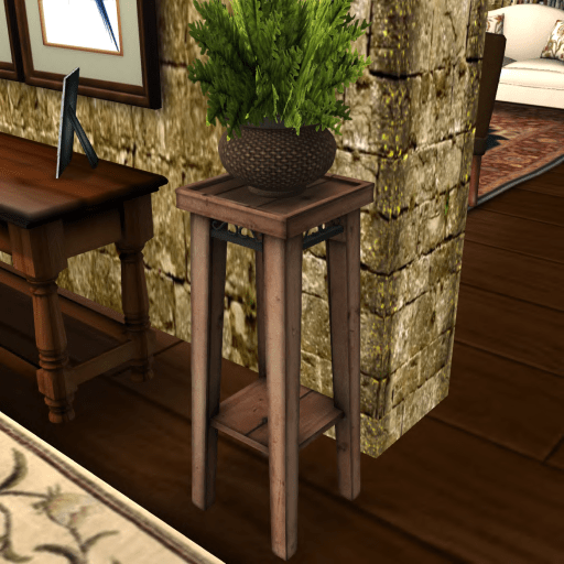 I am putting a price of 10 L on this mesh plant stand. Looks nice tucked away in a corner or by a doorway, inside or out, and is only one prim. Copy and Mod. (The plant is not part of the promo.)