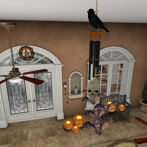 Still gearing up for the big day! This week I have a new skull and raven wind chime, out of which creepy bats fly to scare your guests.