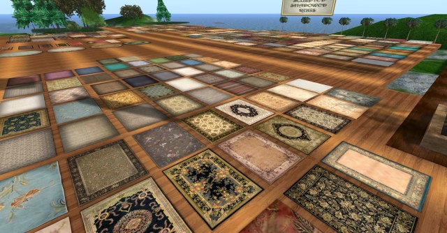 These rugs can all be stretched large without becoming blurry, as they are the highest resolution possible in SL — but for this reason they may take a little while to rez when your viewer first loads them. Sometimes clicking on them speeds loading.