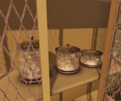I do take note of customer requests, although at this point my “To Do/ To Make” list is several pages long. One request was for a curio cabinet to hold the boxes in your La Galleria Box Collection. I came across a simple mesh curio cabinet and thought it had possibilities, so I retextured it and added legs and a back to it, and I think it looks pretty good. It comes in three colors but it is copy mod so you can tint it any color you like. Only 49L! Right by the landing point.