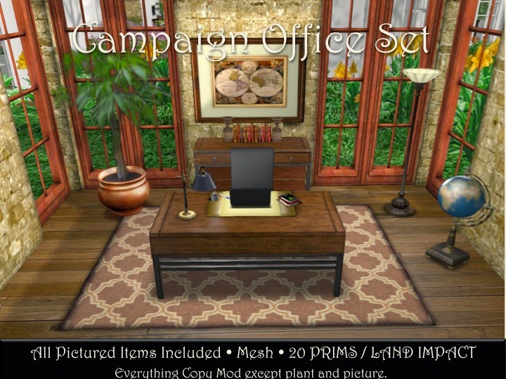 New Campaign Mesh Office — 20 prims August 22, 2014January 28, 2016 ~ pamelagalli See it on the Marketplace HERE. Share this: Click to share on X (Opens in new window) X Click to share on Facebook (Opens in new window) Facebook Like Loading...