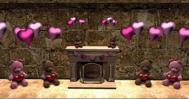 I purchased and modified this teddy bear, and he is just as cute as can be! He comes in two sizes, and is holding balloons that emit festive little hearts! There is a copyable version for free, and also a transfer version available for 10L. That way you are free to keep one, and give others to friends and loved ones!