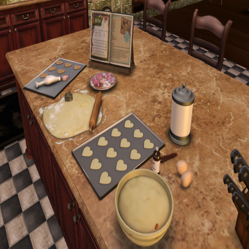 Can be installed to rez from a menu in a Dinner Party Kitchen, or placed on any surface. Comes with baking cookies for the oven.