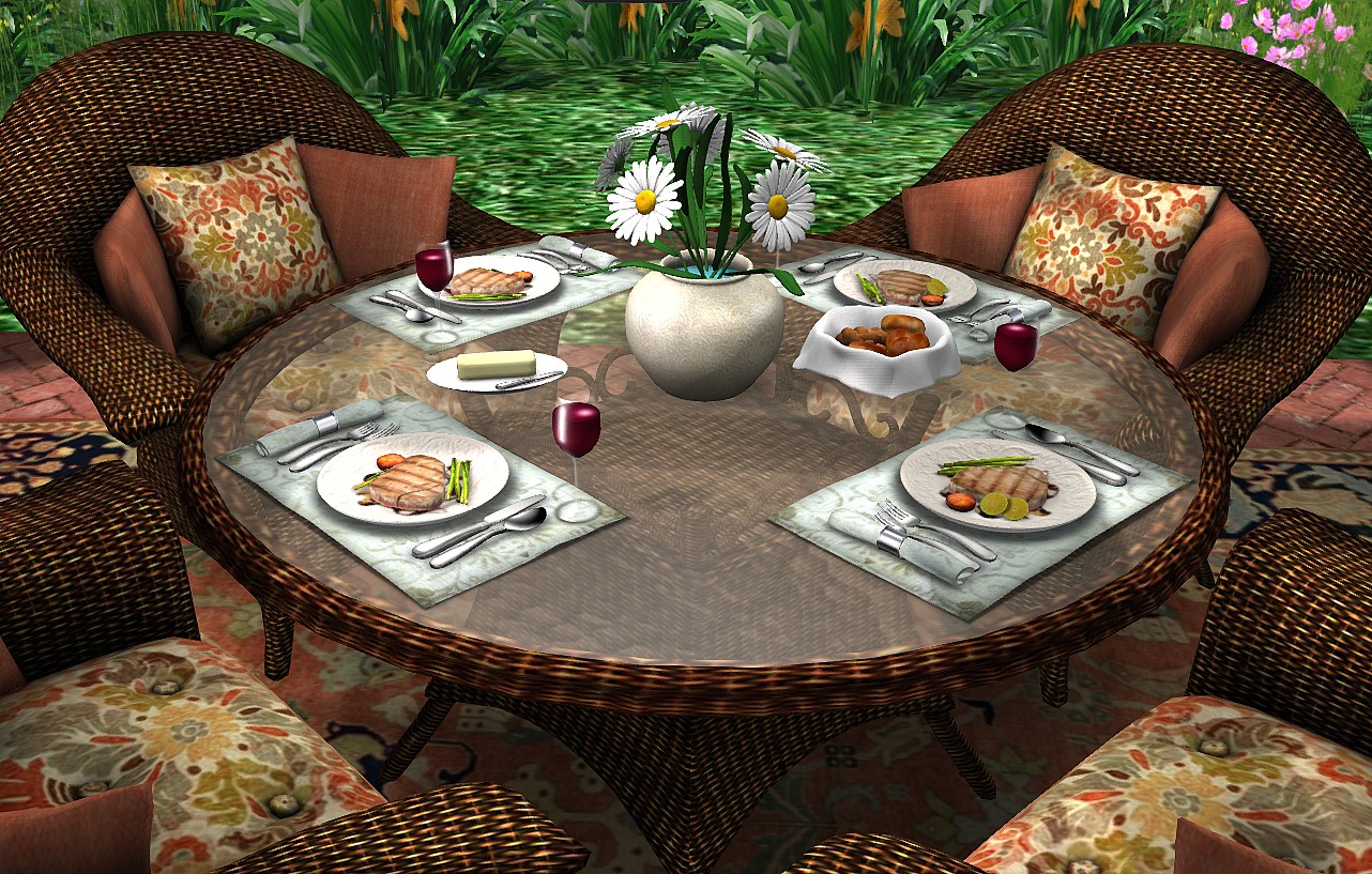Some of you may recognize my new release this week, becasue I have also had a white and tan version available for some time now. It is versatile and can be used in a breakfast, dining, or outdoor area! It can be found at the landing point, and is priced at an introductory rate for a limited time.