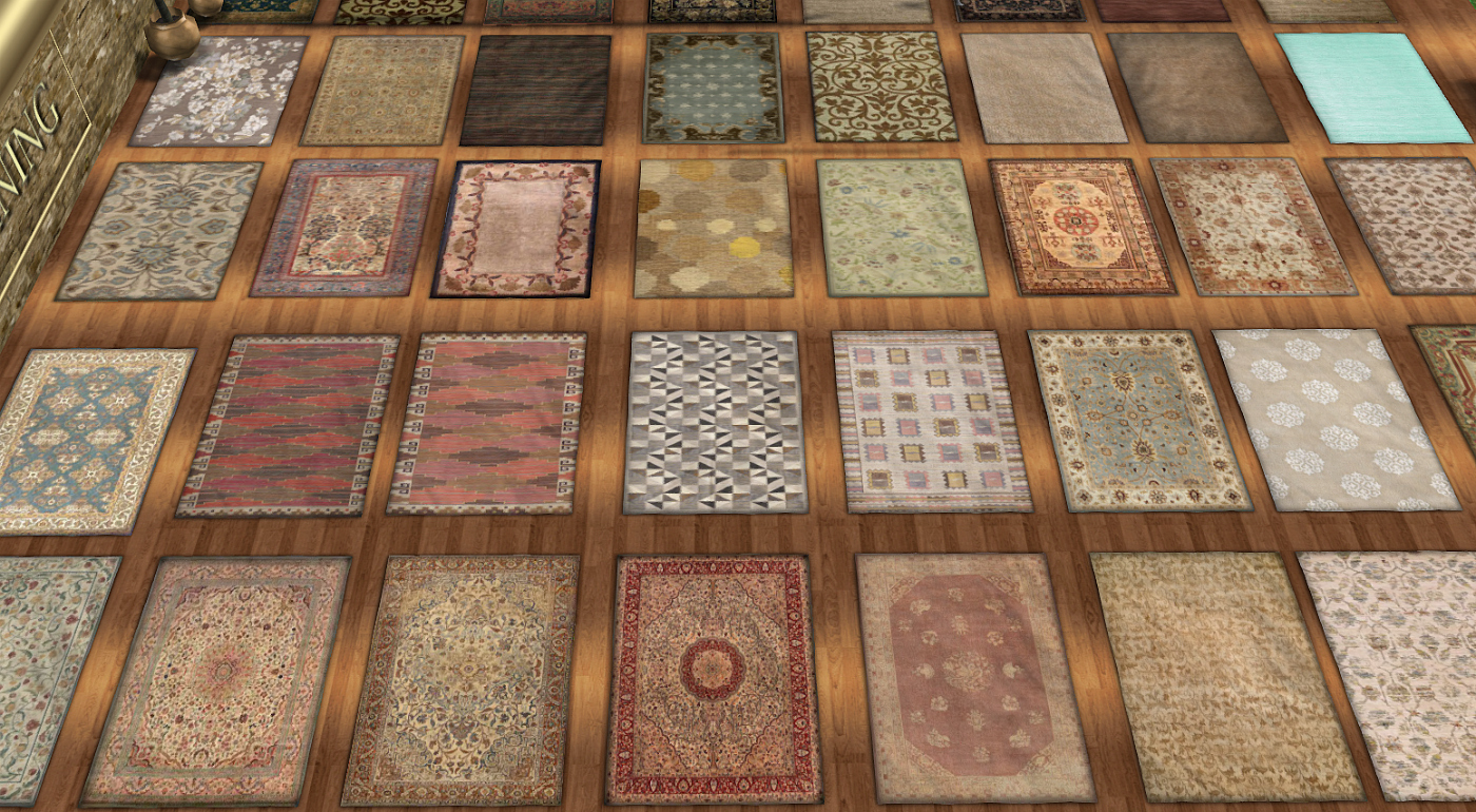 For those who have been waiting: it’s time for the La Galleria Semi-Annual Rug Sale! We have a new shipment of gorgeous, very high resolution rugs of all kinds — contemporary, traditional, antique — in soft colors perfect for spring and summer. And because they are as high resolution as Second Life permits, they will stretch larger without getting blurry.