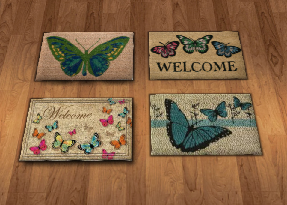 For those of you who have been collecting the Spring butterfly gifts, I have severa lpretty butterfly welcome mats, in the rug department. When a guest steps on one, they get a whispered greeting.