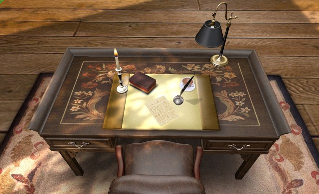 This week I am releasing a COPYABLE Distressed Marquetry Corbel Mesh Office Set! Only 43 Prims/LI It can be found at the landing.