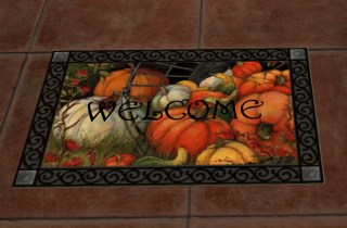 Also pick up this pumpkin welcome mat, pumpkin and corn, and Thanksgiving display plates!