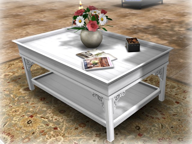 Coffee Table rezzes your choice of coffee service, magazines, candles, appetizers or centerpieces.